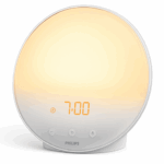 The Philips SmartWake HF3520 simulates a natural sunrise, gradually filling your room with light to wake you gently and energized. It also includes sunset simulation, soothing natural sounds, and an FM radio to help you wind down at night. Clinically proven to improve mood and morning alertness, it’s a top choice for sunrise alarms.Get Weekly Sleep Tech Tips